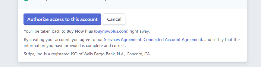 You will then be taken back to buynowplus.com and see your connected Stripe account(s).