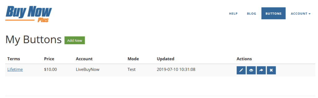 From your logged in page, navigate to “Buttons” from the menu then choose the “Add New” button