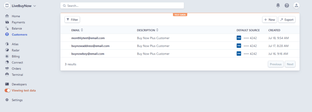 Navigate and login to Stripe.com then click on the “Customers” icon from your dashboard.