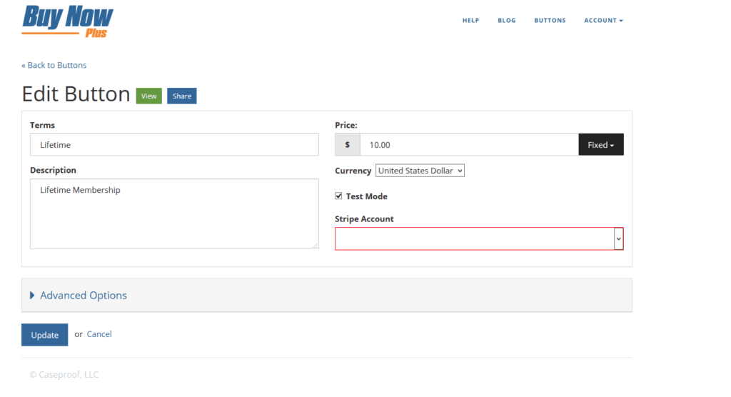 To verify if your button is in Test Mode or not, simply hit the View (eyeball) button to pull it up and you should see a large red “test mode” bar.